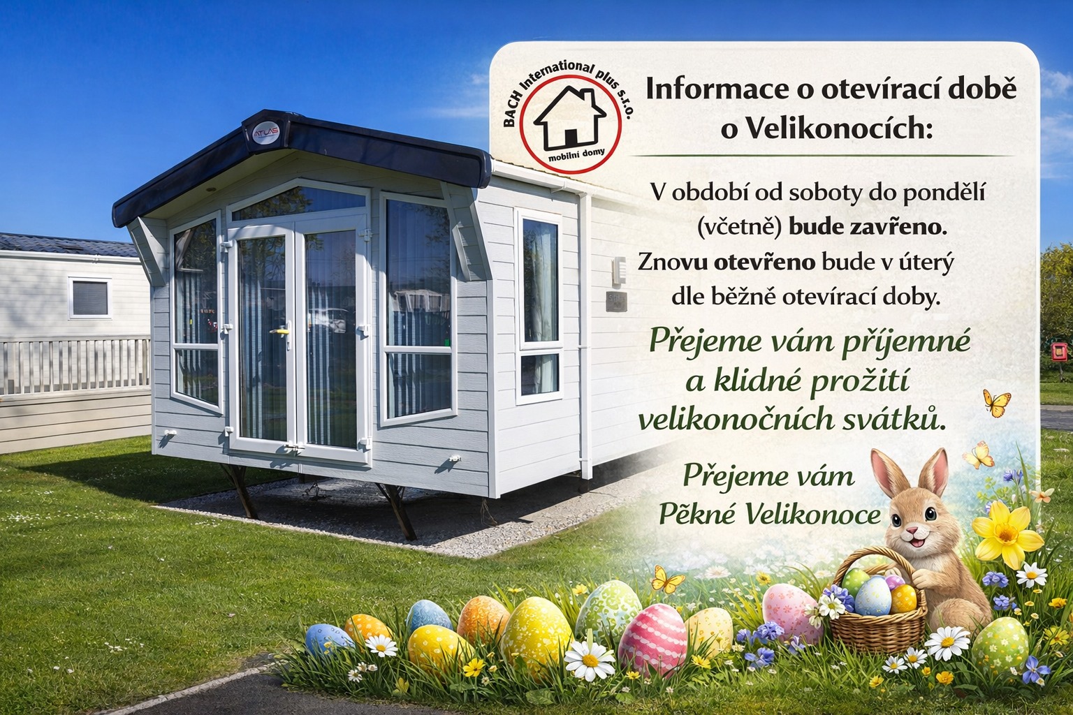 Chci poděkovat kolektivu firmy BACH za spolupráci a rady. Jako jediná firma nám mobilní dům i profesionálně usadila na místo určení a to v ceně mobilního domu. Ochotně poradili s topením a nainstalovali. Doporučuji na 100%.