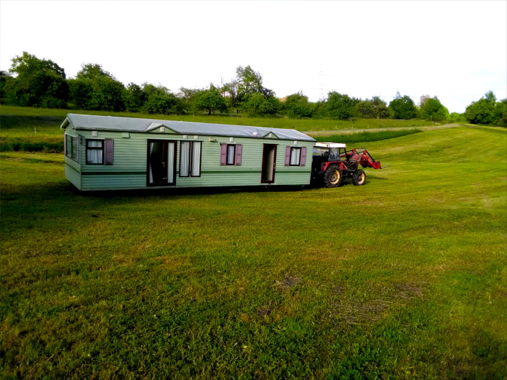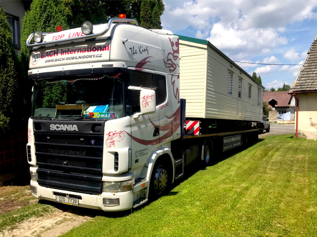 Mobilní dům k Vám dopravíme zdarma. Po silnicích tahačem s podvalníkem, v náročnějším terénu traktorem.