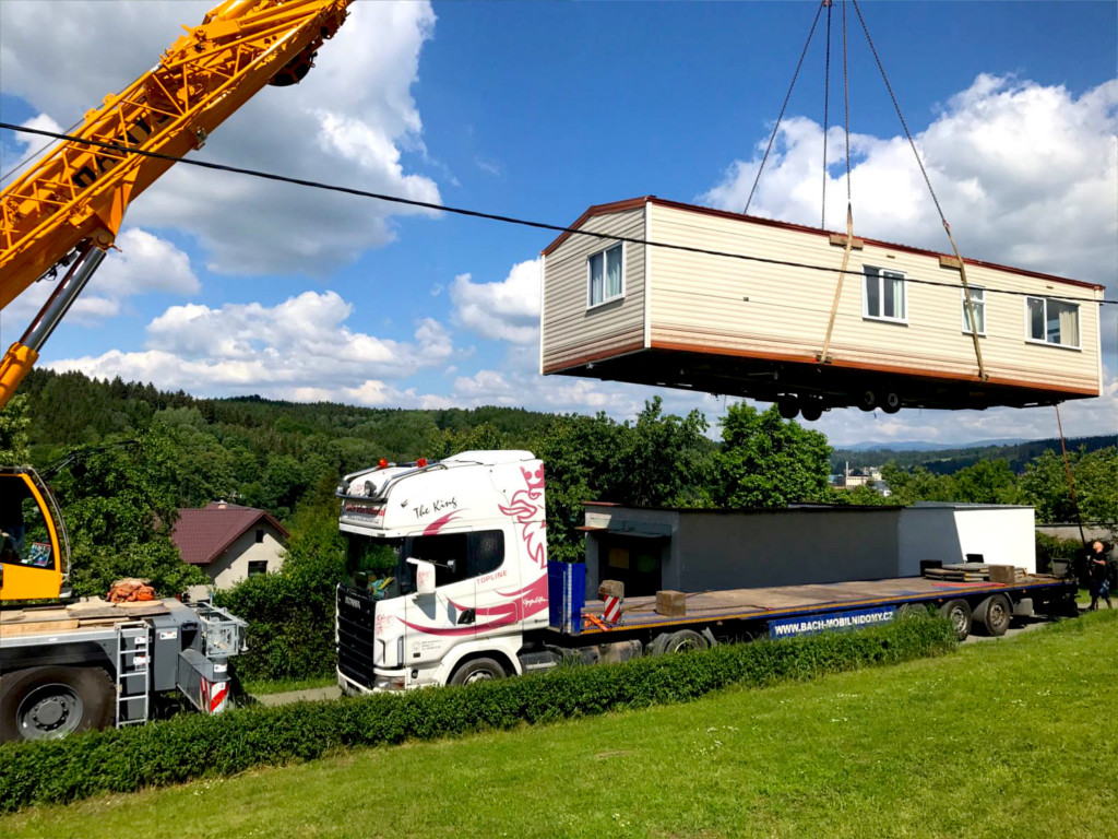 Usazení je též zdarma. Mobilní dům umístíme na zvolené místo a následně vyrovnáme podložením nosných bodů.